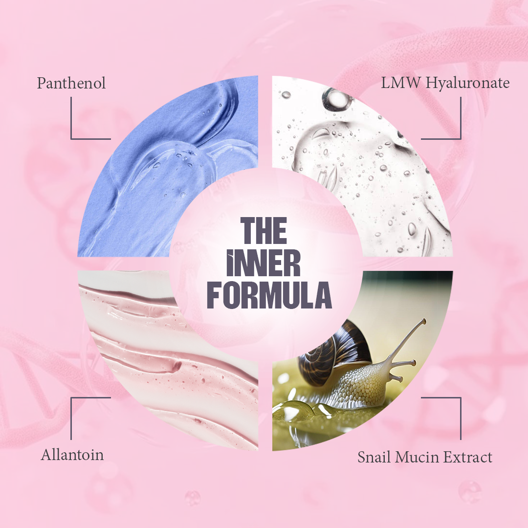 Dehydrated, stressed skin? This serum dives deep with LMW Hyaluronic Acid, Panthenol, Snail Mucin, and Allantoin to quench dryness, repair the barrier, and leave skin supple and refreshed.